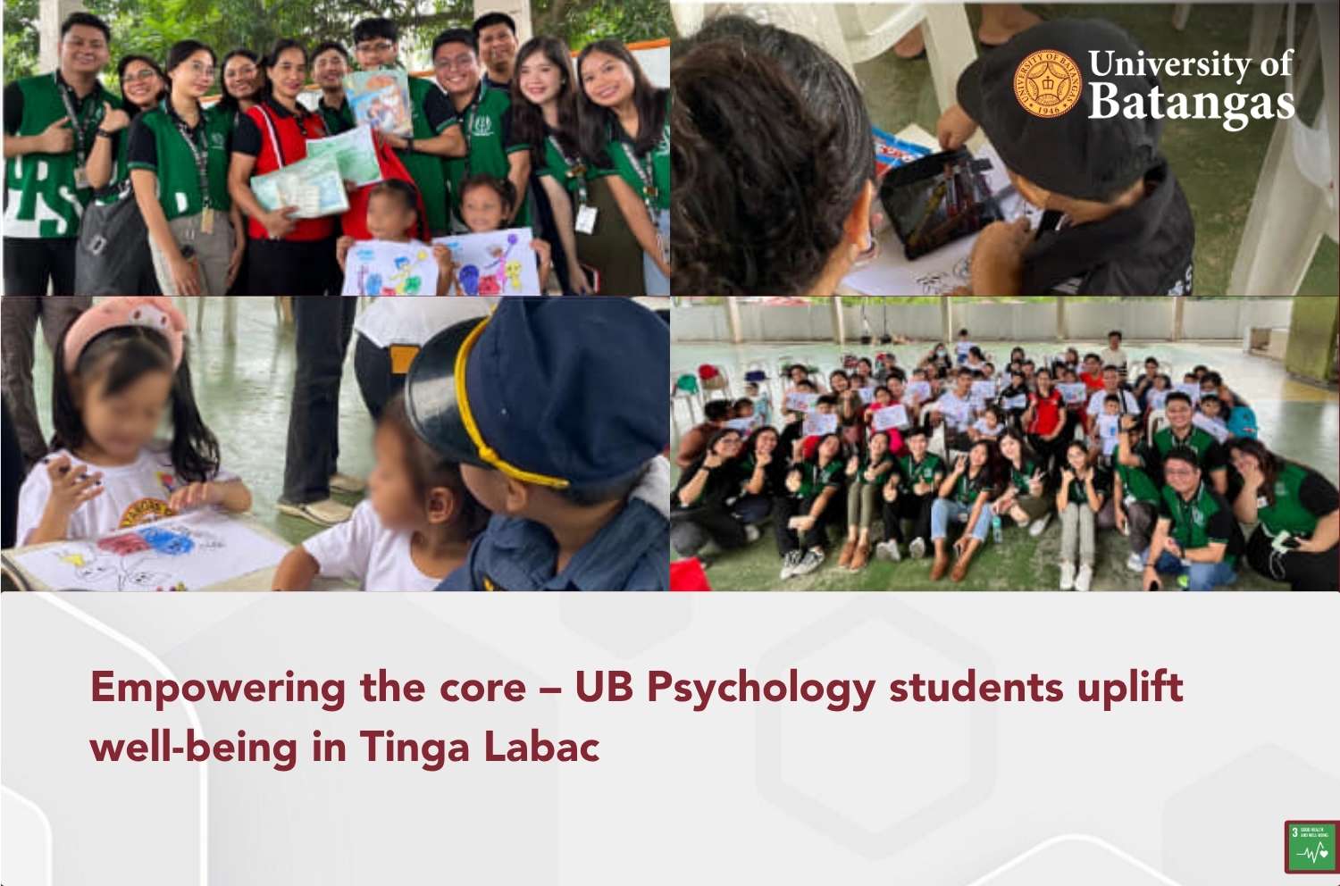 A foundation for wellness – The 4th year students from the Organization of Psychology Students (OPS) of the University of Batangas (UB) College of Arts and Sciences (CAS) brought their expertise and compassion to the community of Tinga, Labac, Batangas City on November 30, 2023.