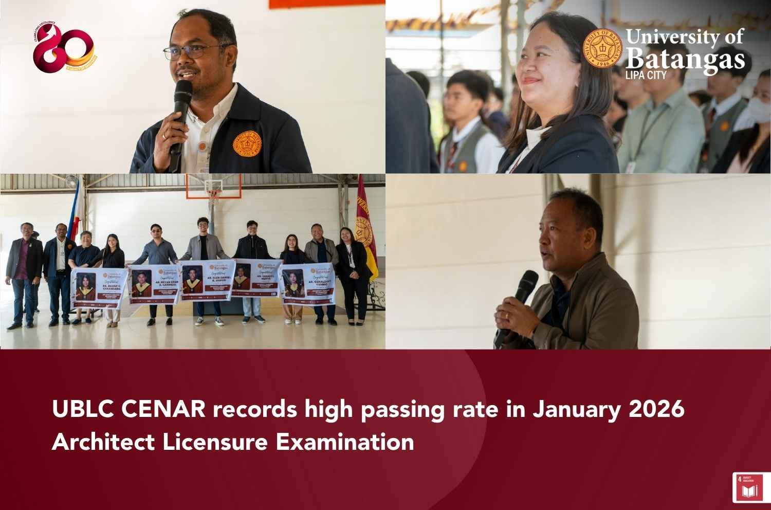 The University of Batangas Lipa City (UBLC), through its College of Engineering and Architecture, recorded a strong institutional performance in the January 2026 Architect Licensure Examination, with five out of