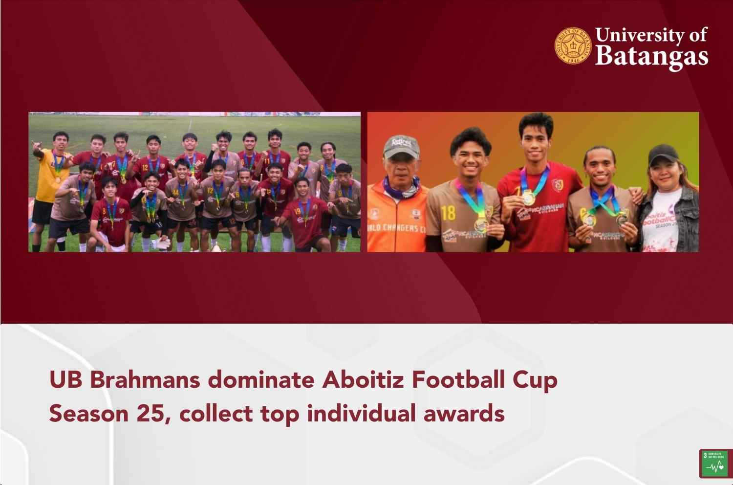 The University of Batangas (UB) Brahmans Football Team asserted its dominance in the Aboitiz Football Cup Season 25 – Men’s 23-and-Under Division on December 7, 2025, at the Aboitiz Pitch in Lipa City, after sweeping the tournament’s major individual awards.