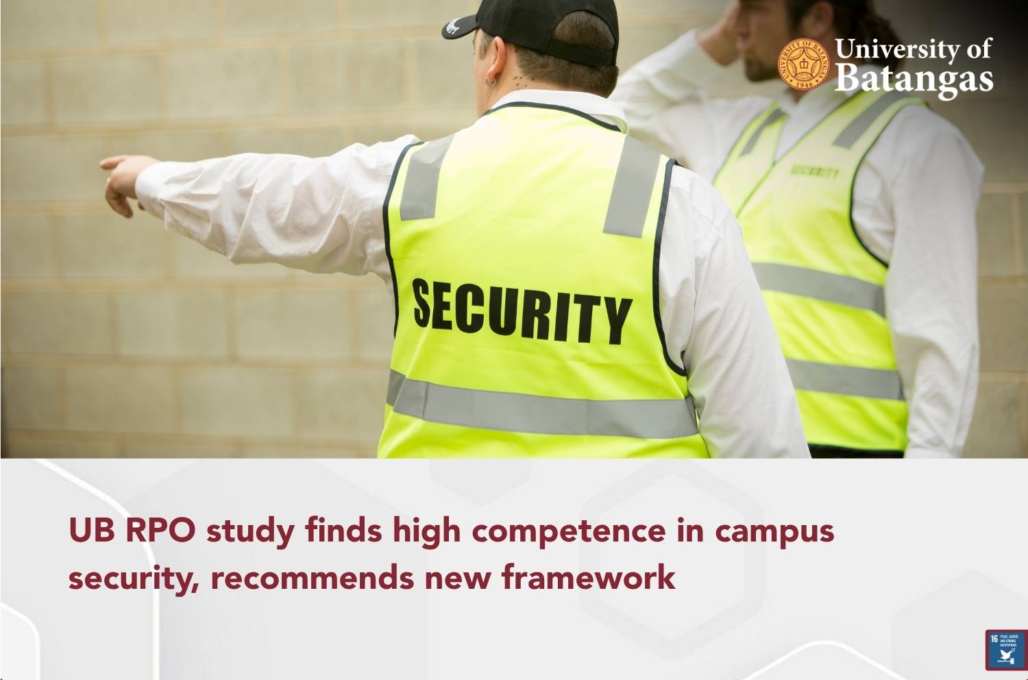 A new study from the Research and Publications Office (RPO) at the University of Batangas (UB) has assessed the implementation of campus security measures, finding a “Very High” level of competence among security personnel and no reported security compromises during the April 2020 to April 2022 pandemic period.