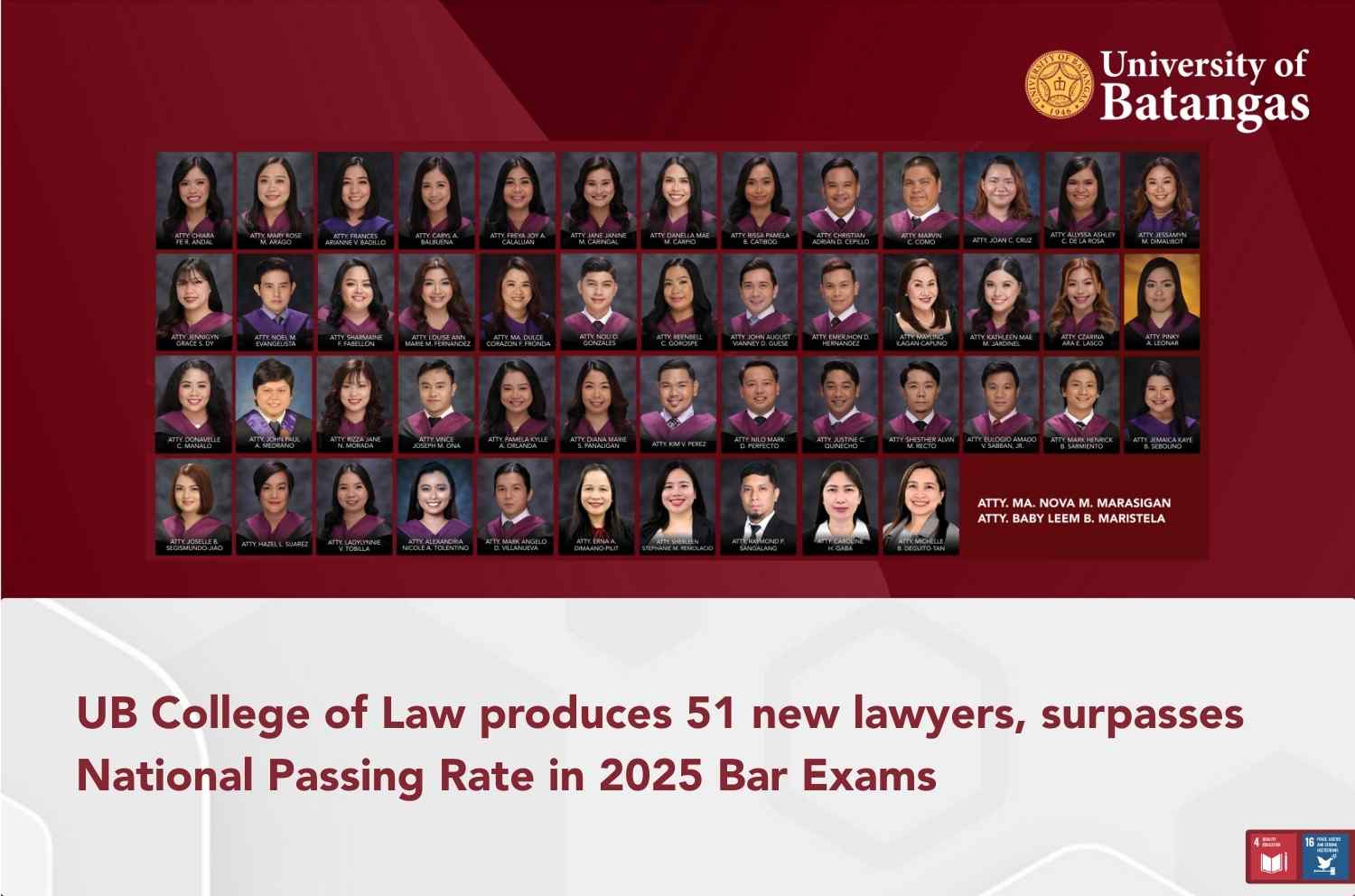 UB College of Law produces 51 new lawyers, surpasses National Passing Rate in 2025 Bar Exams