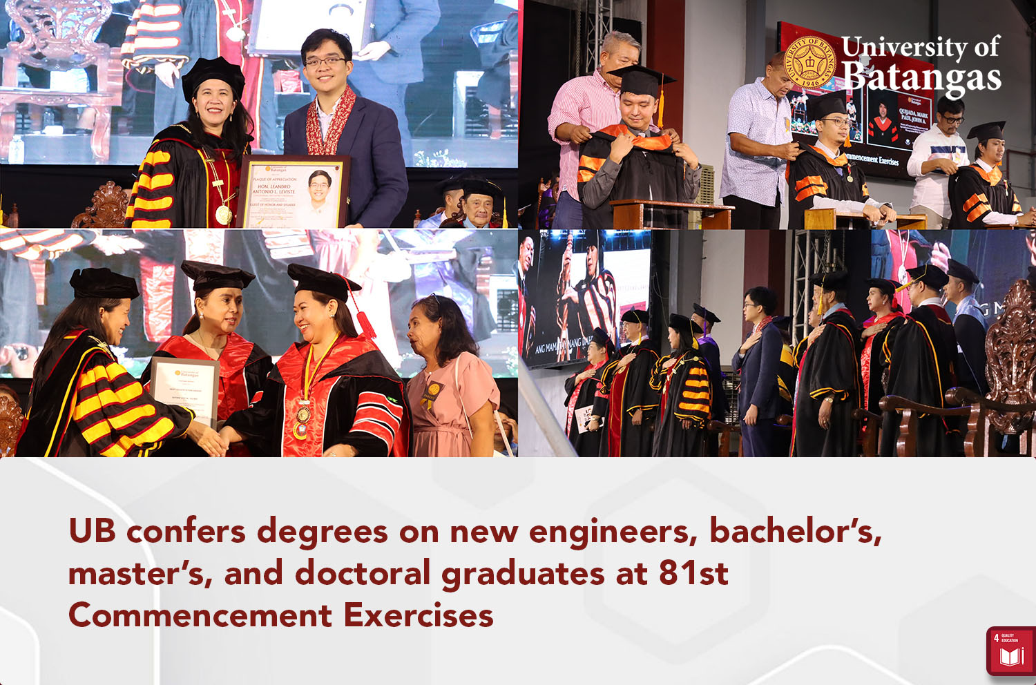 Ahead of its 80th Founding Anniversary, the University of Batangas (UB) conferred degrees on new engineers, bachelor’s, master’s, and doctoral degrees during the 81st Commencement Exercises at the UB Millenium Gymnasium (ML) on September 17, 2025.