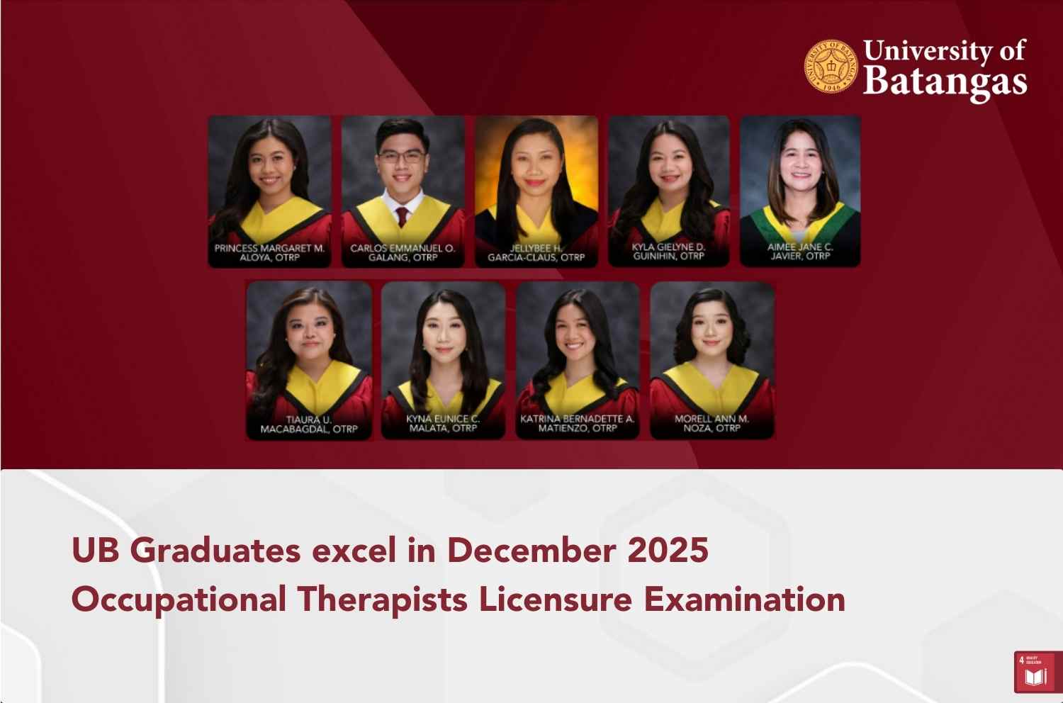 The University of Batangas (UB) celebrates the success of its Bachelor of Science in Occupational Therapy (BS OT) graduates in the December 2025 Occupational Therapists Licensure Examination (OTLE), held on December 2, 2025.