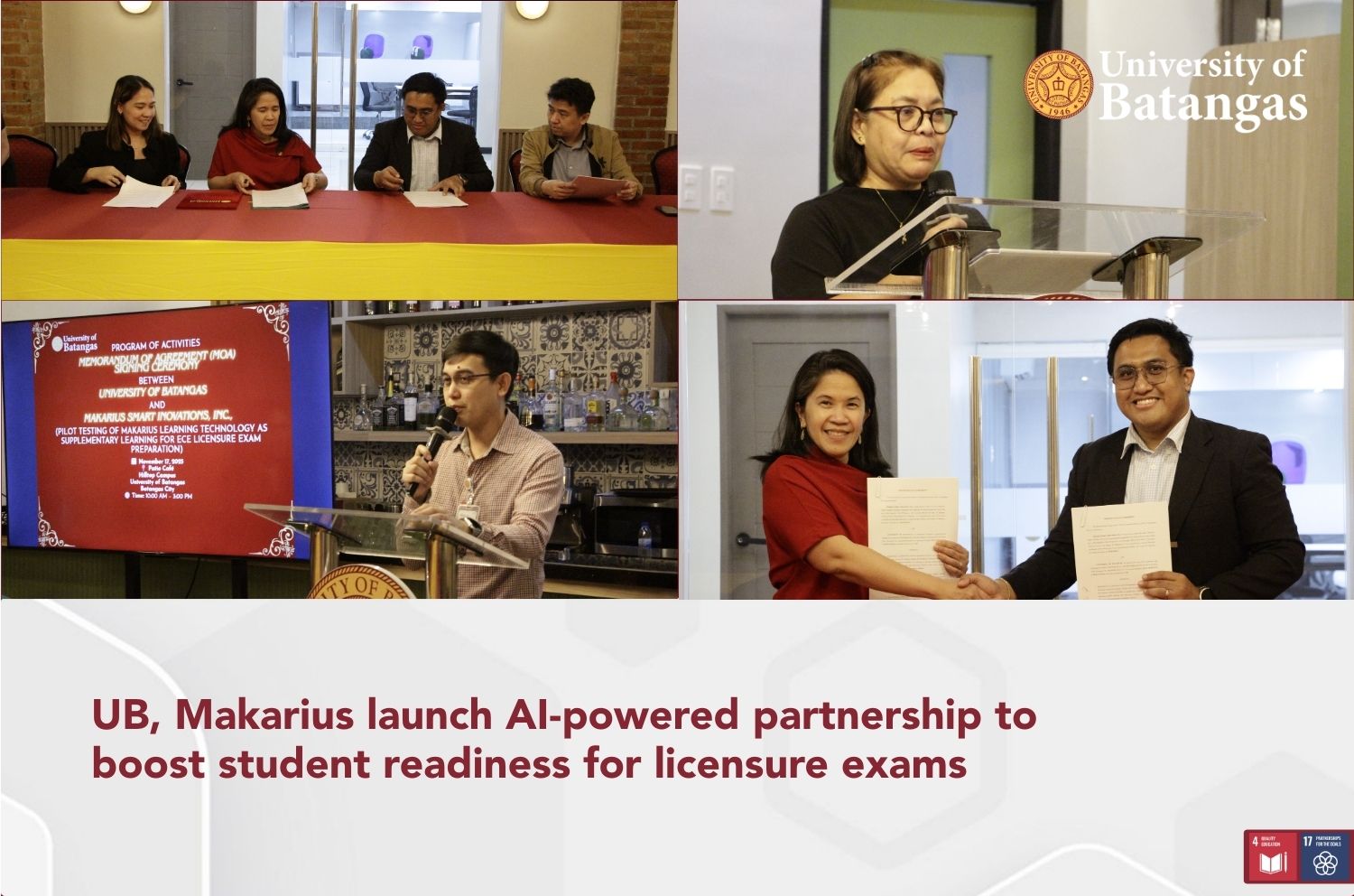 The University of Batangas (UB) launched a new collaboration with Makarius Smart Innovations Inc. through a Memorandum of Understanding (MoU) signing on November 17, 2025, at the UB Patio Café.