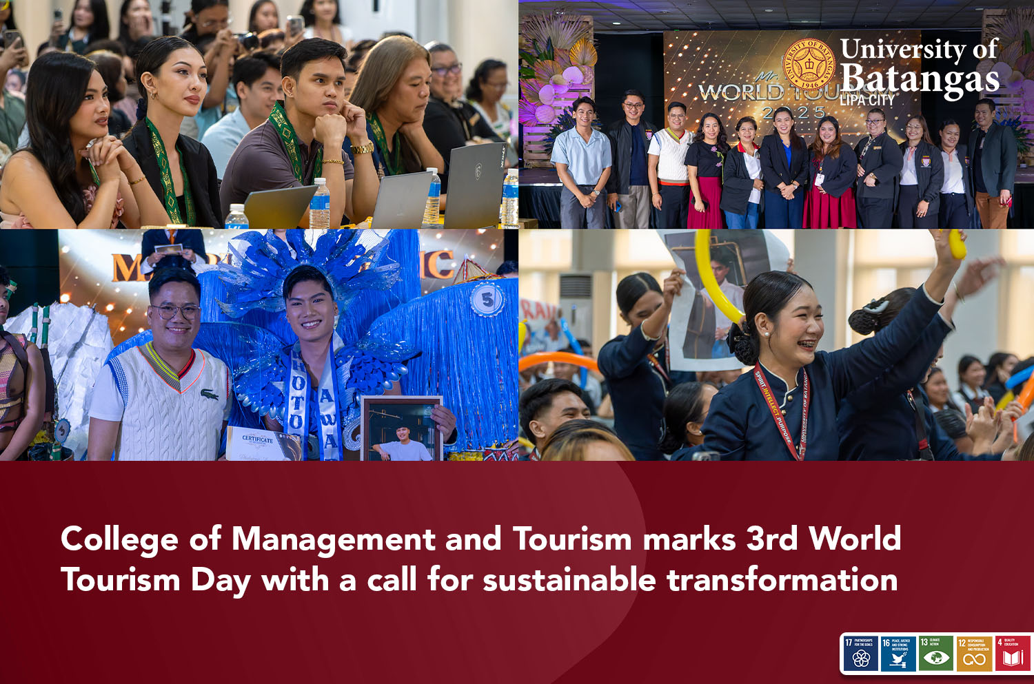 Lipa City, Batangas – September 30, 2025. The College of Management and Tourism of the University of Batangas Lipa City, in partnership with the Junior Tourism, Hospitality, and Real Estate Professionals (JTHREP), successfully celebrated the 3rd Annual World Tourism Day on September 30, 2025. With the theme “Tourism and Sustainable Transformation,” the event highlighted both local and global initiatives that position tourism as a powerful tool for sustainability, inclusivity, and innovation.