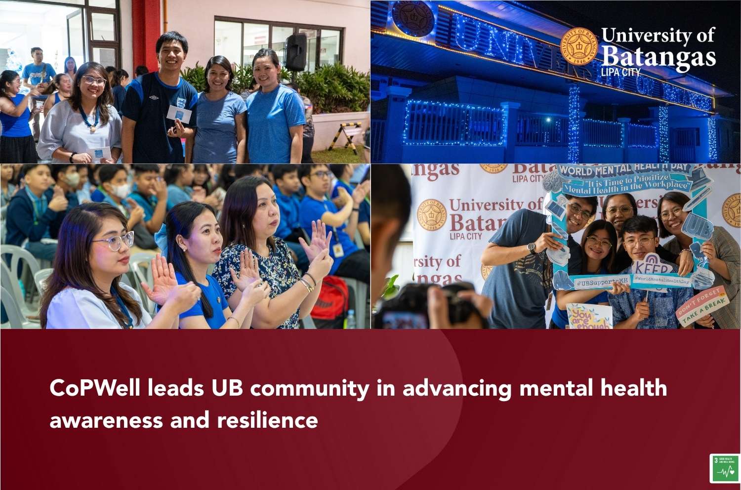 In support of global efforts to promote psychological well-being, the University of Batangas (UB), through its Counseling and Psychological Wellness Center (CoPWell), spearheaded the