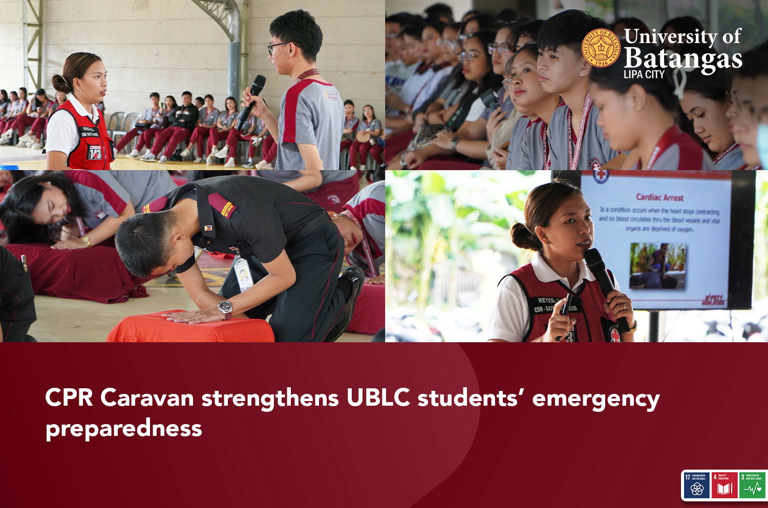 In an interview, Ms. Alexandra De Castro, President of the UBLC Red Cross Youth (RCY), emphasized the importance of the activity in line with the organization’s mission. “This month of September we have accomplished and wrapped up two major activities of the Red Cross Youth Council: the Blood Donation Drive and this CPR Caravan. The objective is to save lives—that’s really the mission. And our vision is to save more lives. CPR is a vital skill that can be used while waiting for professional help, giving us the chance to save lives,” she said.