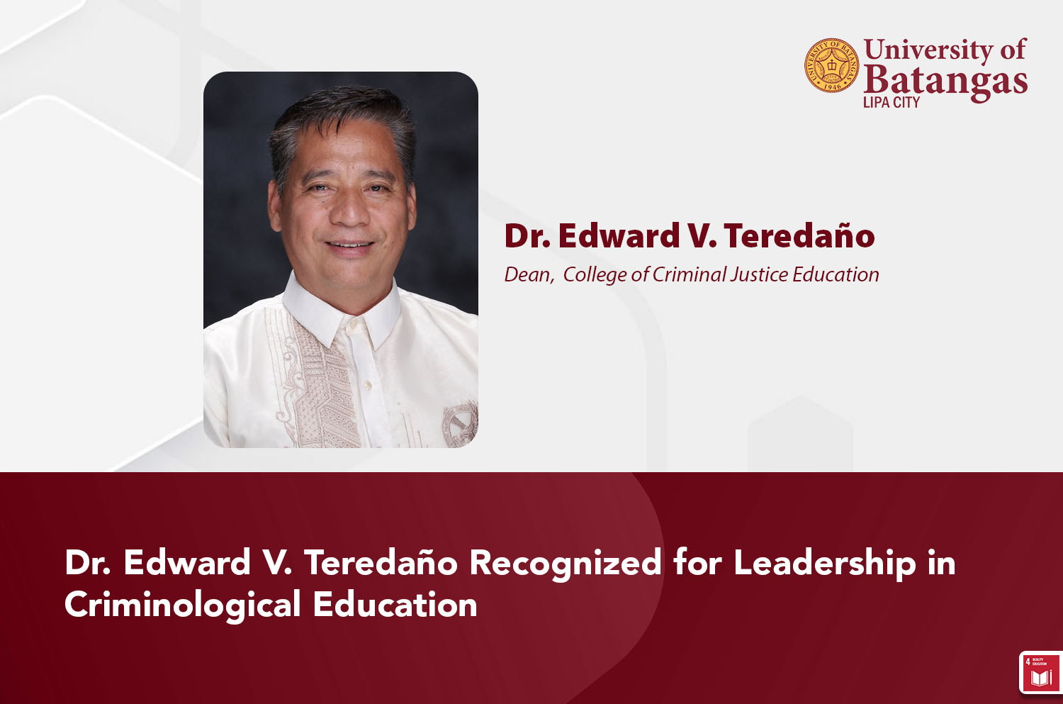 The University of Batangas Lipa City proudly congratulates Dr. Edward V. Teredaño, Dean of the College of Criminal Justice Education, for receiving two international