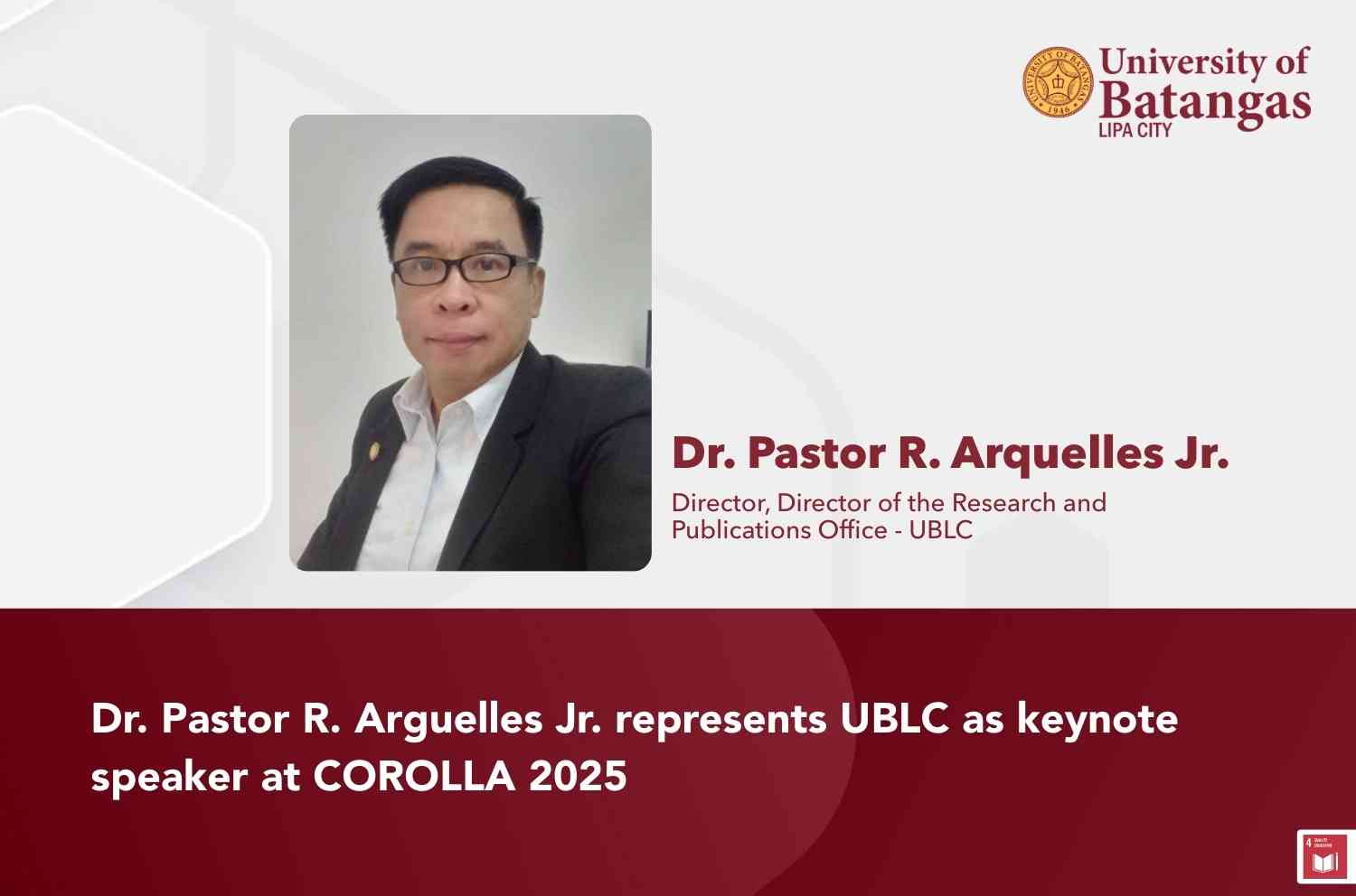 Dr. Pastor R. Arguelles Jr. represents UBLC as keynote speaker at COROLLA 2025