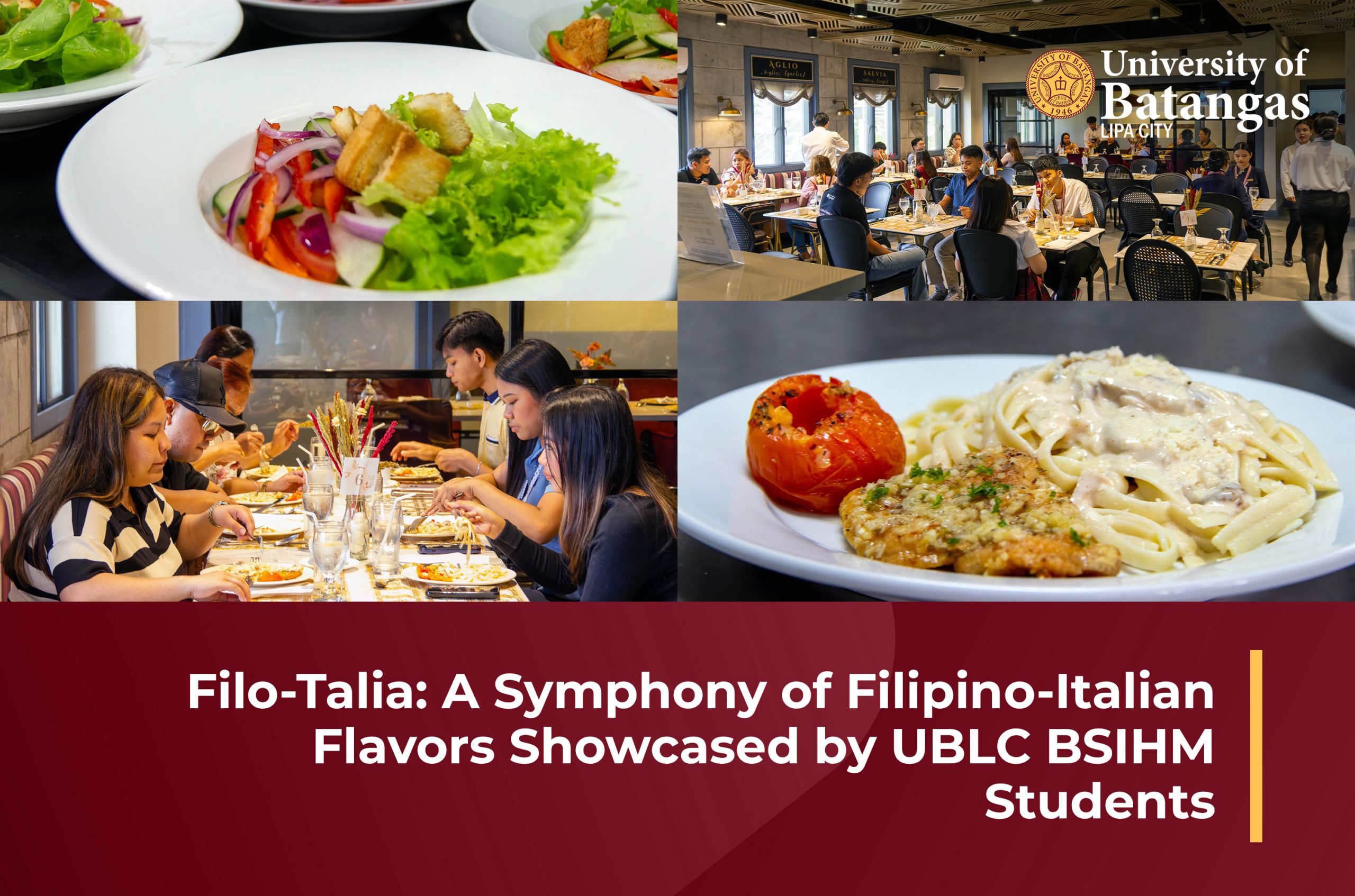 The third-year students of the Bachelor of Science in International Hospitality Management (BSIHM) program at UBLC – College of Management and Tourism recently demonstrated their expertise in the field of catering through the successful execution of Filo-Talia: Symphony of Flavor. This Filipino-Italian-themed cuisine and catering event, held at Trattoria Lipeña, was a testament to the students’ dedication and skill in the hospitality industry.