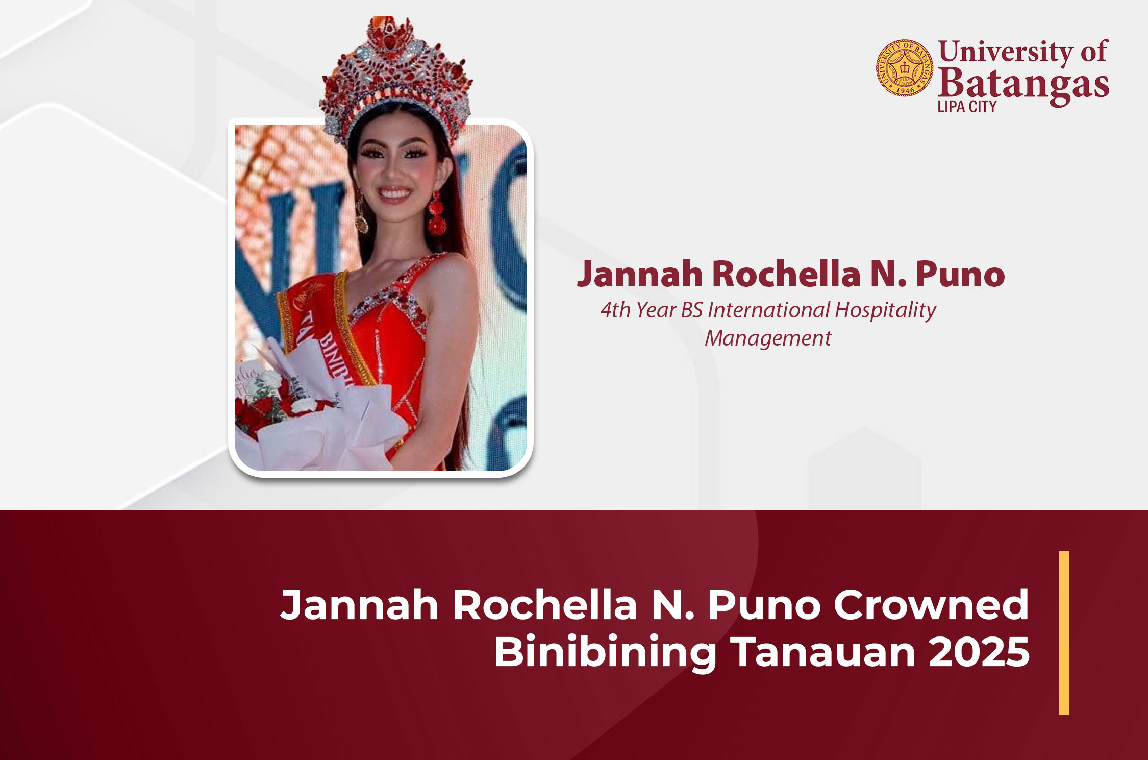 Tanauan City witnessed an evening filled with grace, intelligence, and unwavering determination as Jannah Rochella N. Puno was crowned Binibining Tanauan 2025. A fourth-year student pursuing a Bachelor of Science in International Hospitality Management at the University of Batangas in Lipa City, Jannah’s journey to the crown is a testament to her dedication, passion, and perseverance.