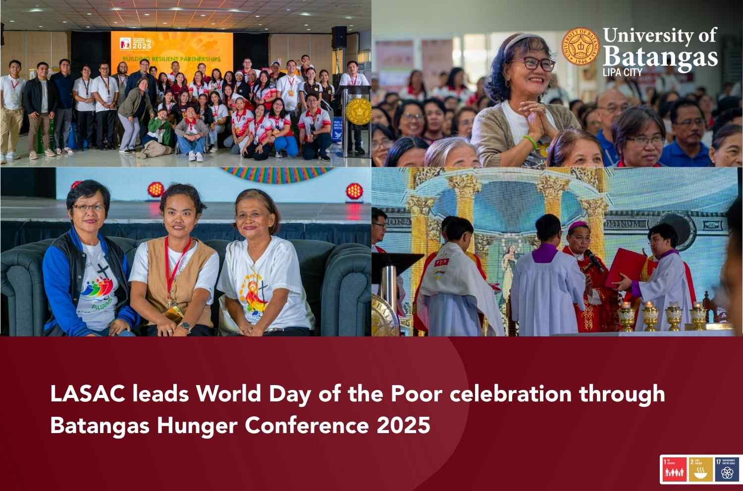 The University of Batangas Lipa City (UBLC) served as the venue for the Batangas Hunger Conference 2025 on November 22, 2025. bringing together partners, advocates, and community leaders in observance of the World Day of the Poor. Organized by the Archdiocese of Lipa through the Lipa Archdiocesan Social Action Commission, Inc. (LASAC), the conference centered on the theme “Building Resilient Partnerships to Achieve Zero Hunger.” The event aimed to strengthen collaborative efforts to address hunger and promote sustainable, community-driven solutions across Batangas.