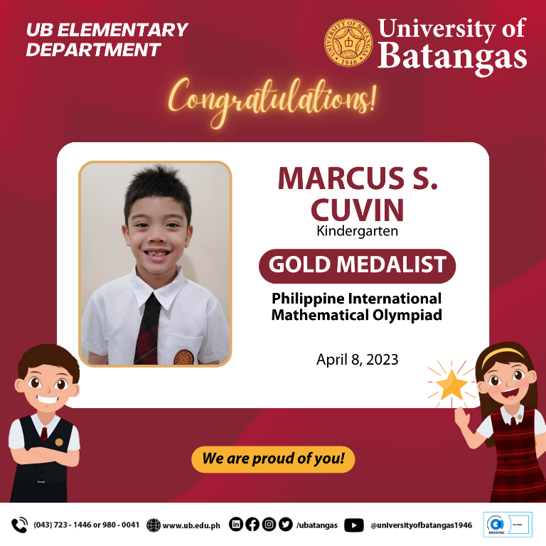 The University of Batangas Lipa City (UBLC) continues to strengthen its commitment to global competence and quality education as BS Legal Management student Ethan Gabriel D. Ages earned the Most