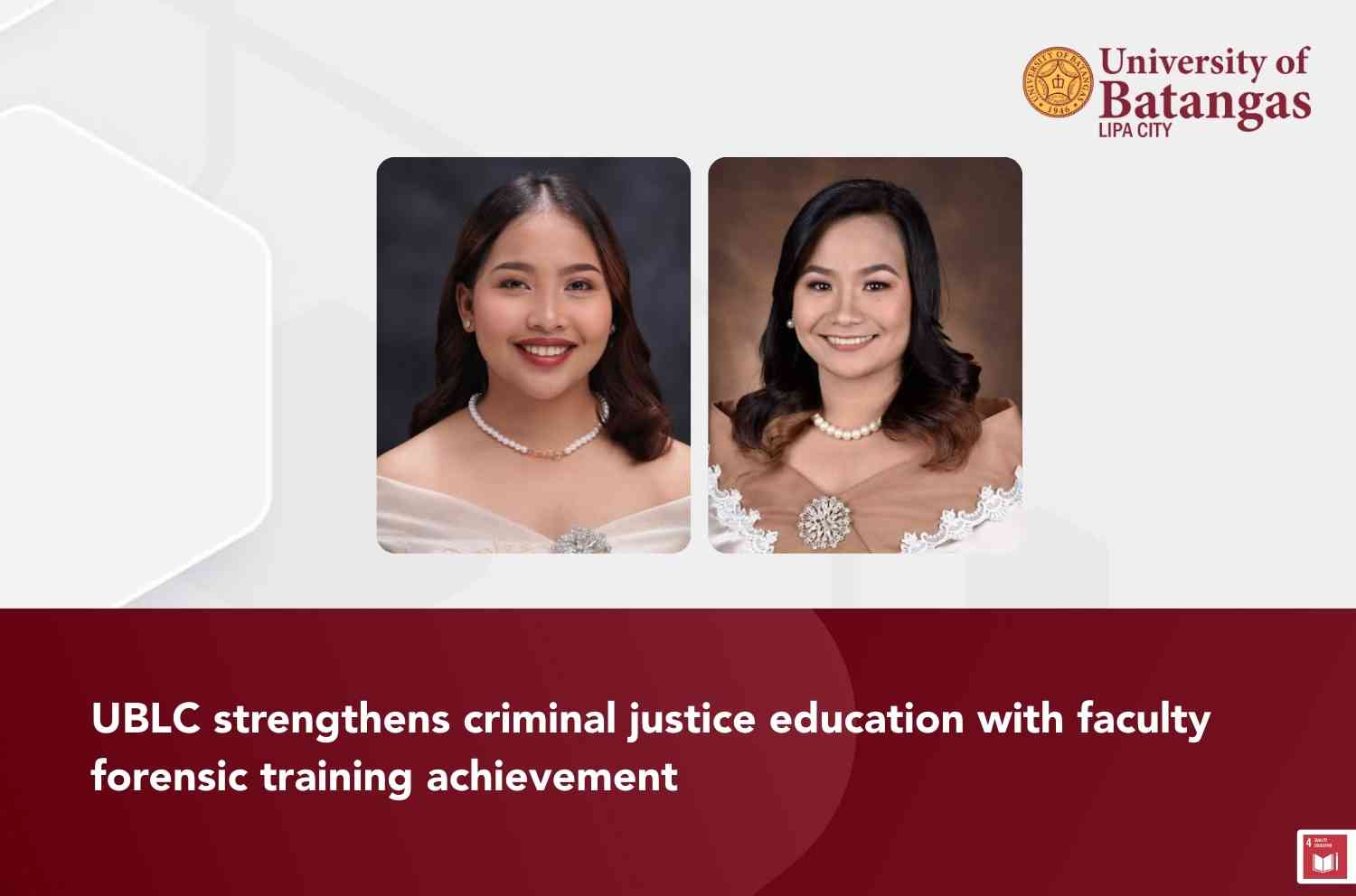 Two faculty members from the College of Criminal Justice Education of the University of Batangas Lipa City successfully completed the Forensic Science Certification Training Course (FSCTC) conducted by the Forensic