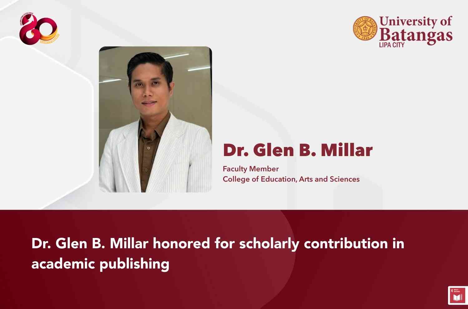 Dr. Glen B. Millar, faculty member of the College of Education, Arts and Sciences at the University of Batangas Lipa City (UBLC), was named Outstanding Book Author of the Year