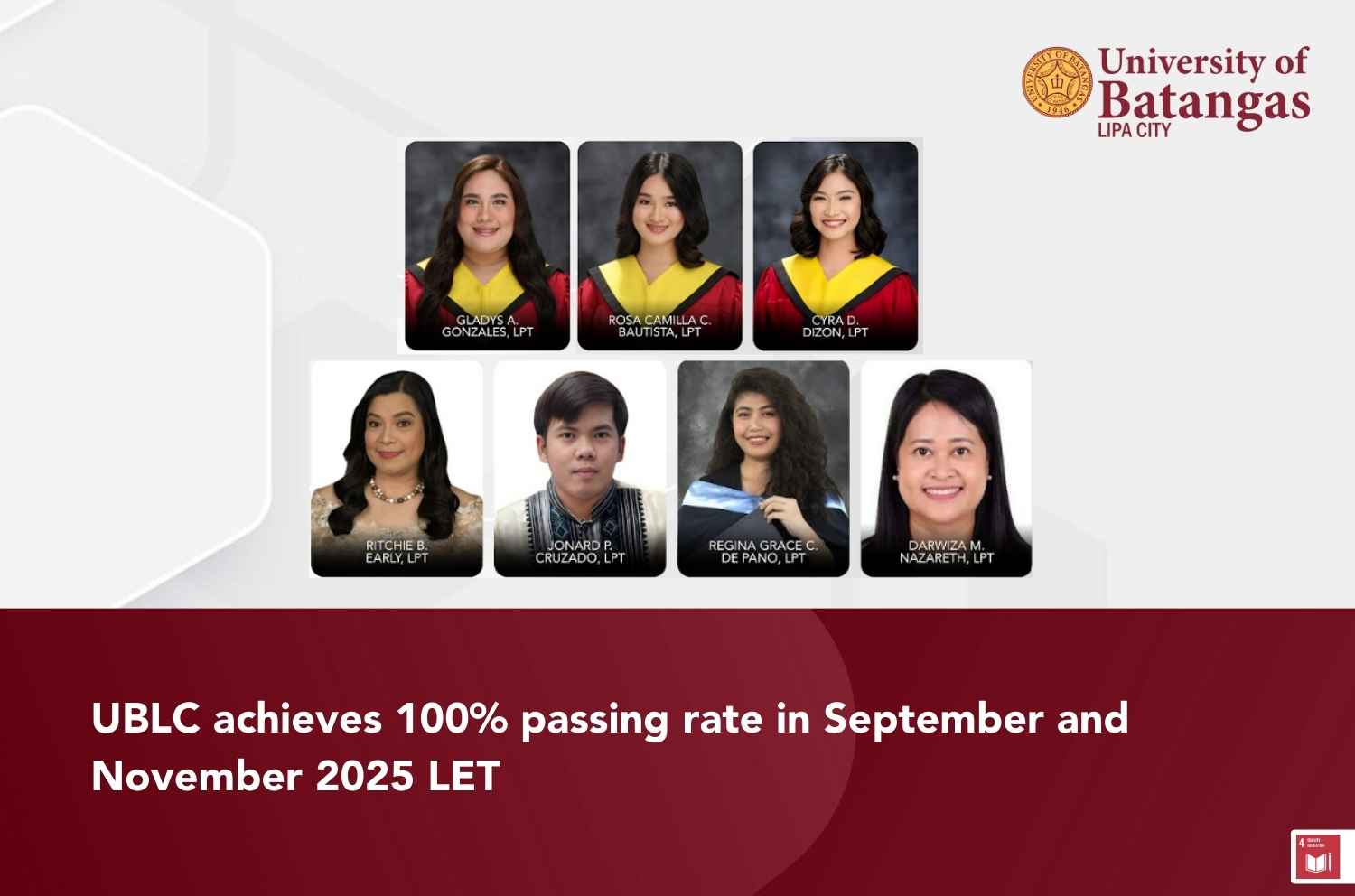 UBLC achieves 100% passing rate in September and November 2025 LET