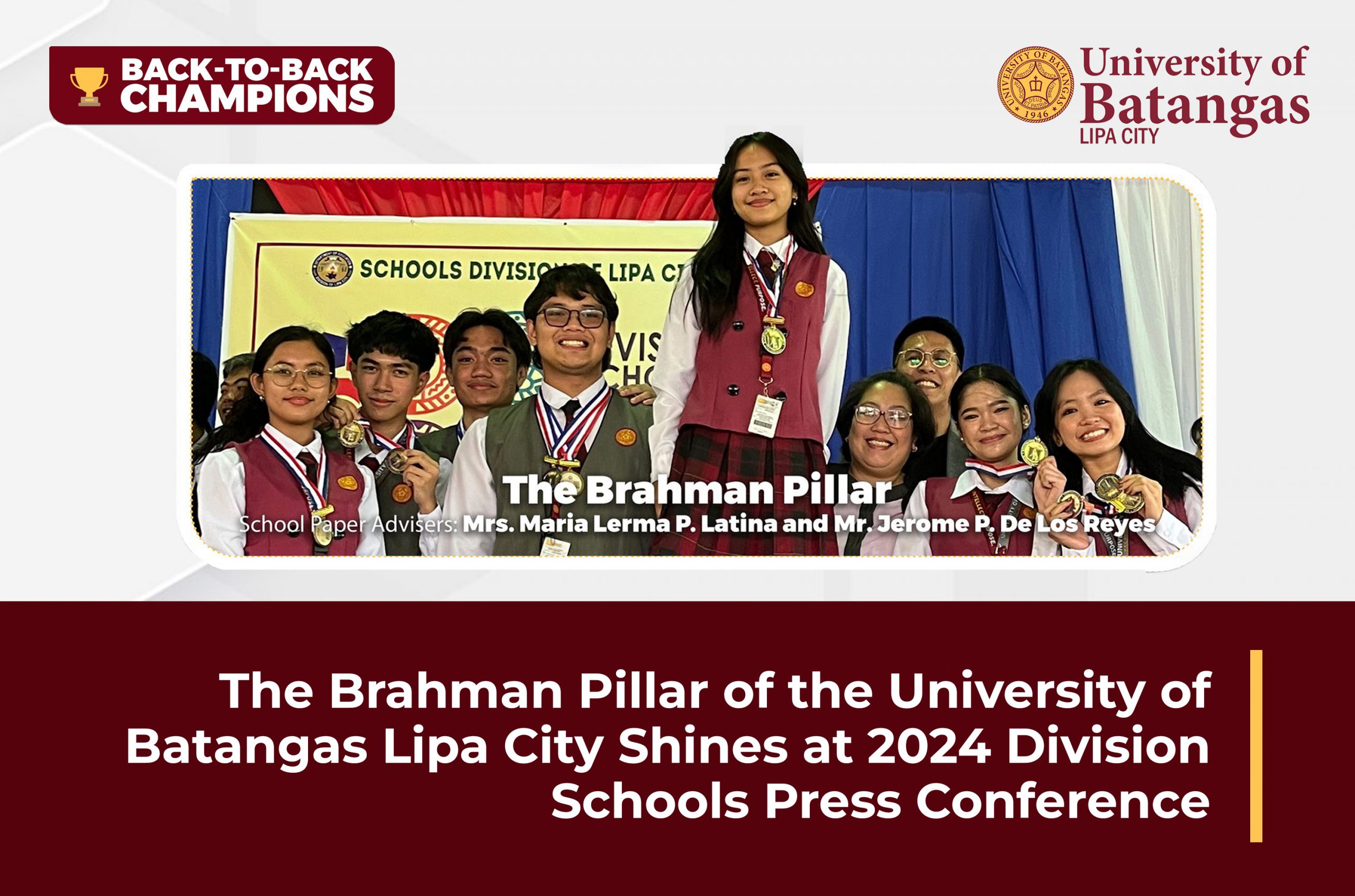 The Brahman Pillar, the official student publication of the University of Batangas Lipa City – High School, recently made waves at the 2024 Division Schools Press Conference, held on December 9-11, 2024. The event showcased the exceptional talent and dedication of aspiring student journalists from various schools in the region.