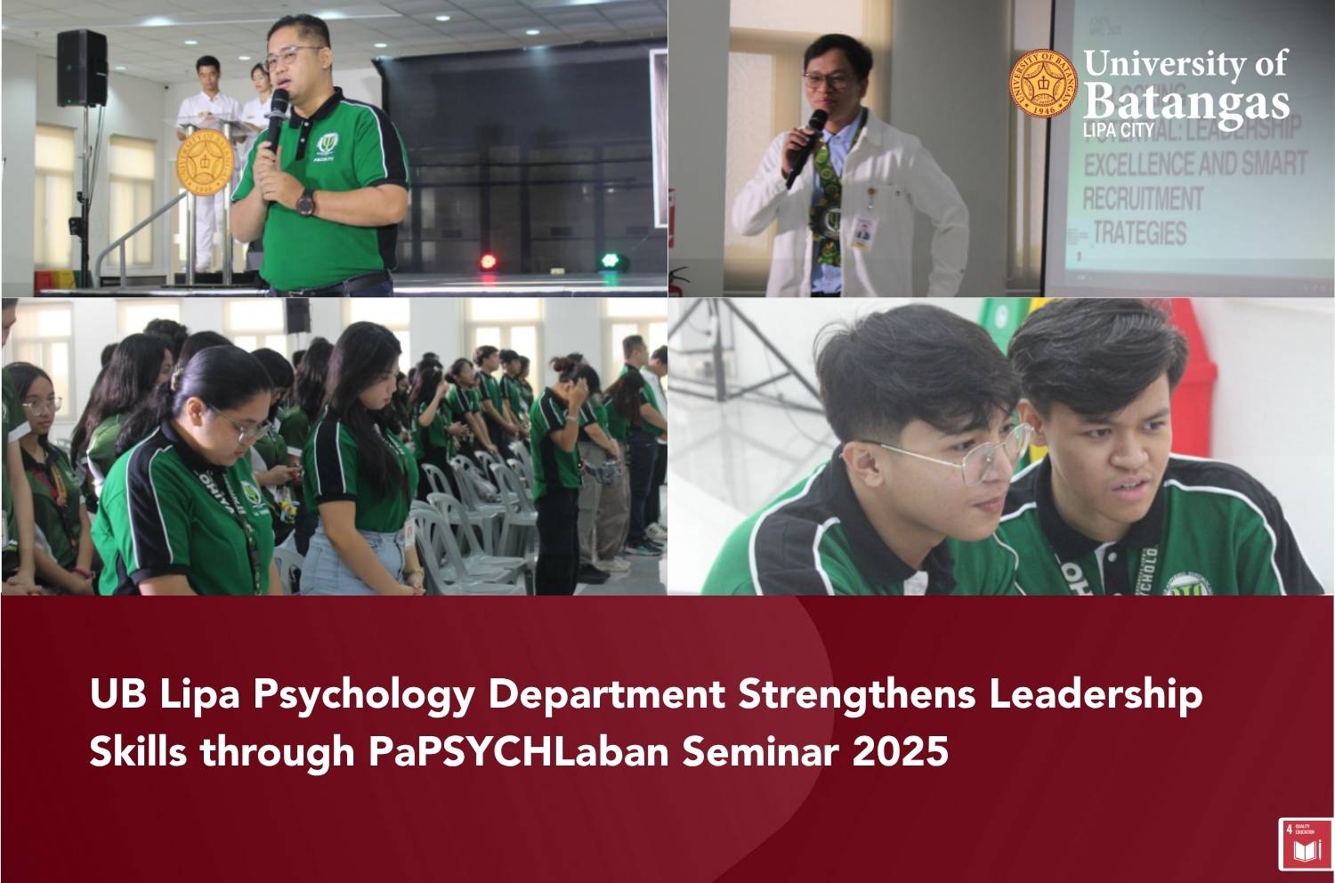 The Psychology Department of the University of Batangas Lipa City (UBLC) conducted the PaPSYCHLaban Seminar: Unlocking Potential – Leadership Excellence and Smart Recruitment Strategies to enhance academic learning and leadership development among students, in line with Sustainable Development Goal 4 (SDG 4): Quality Education.
