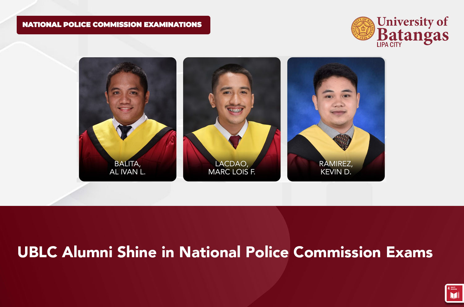 UBLC Alumni Shine in National Police Commission Exams