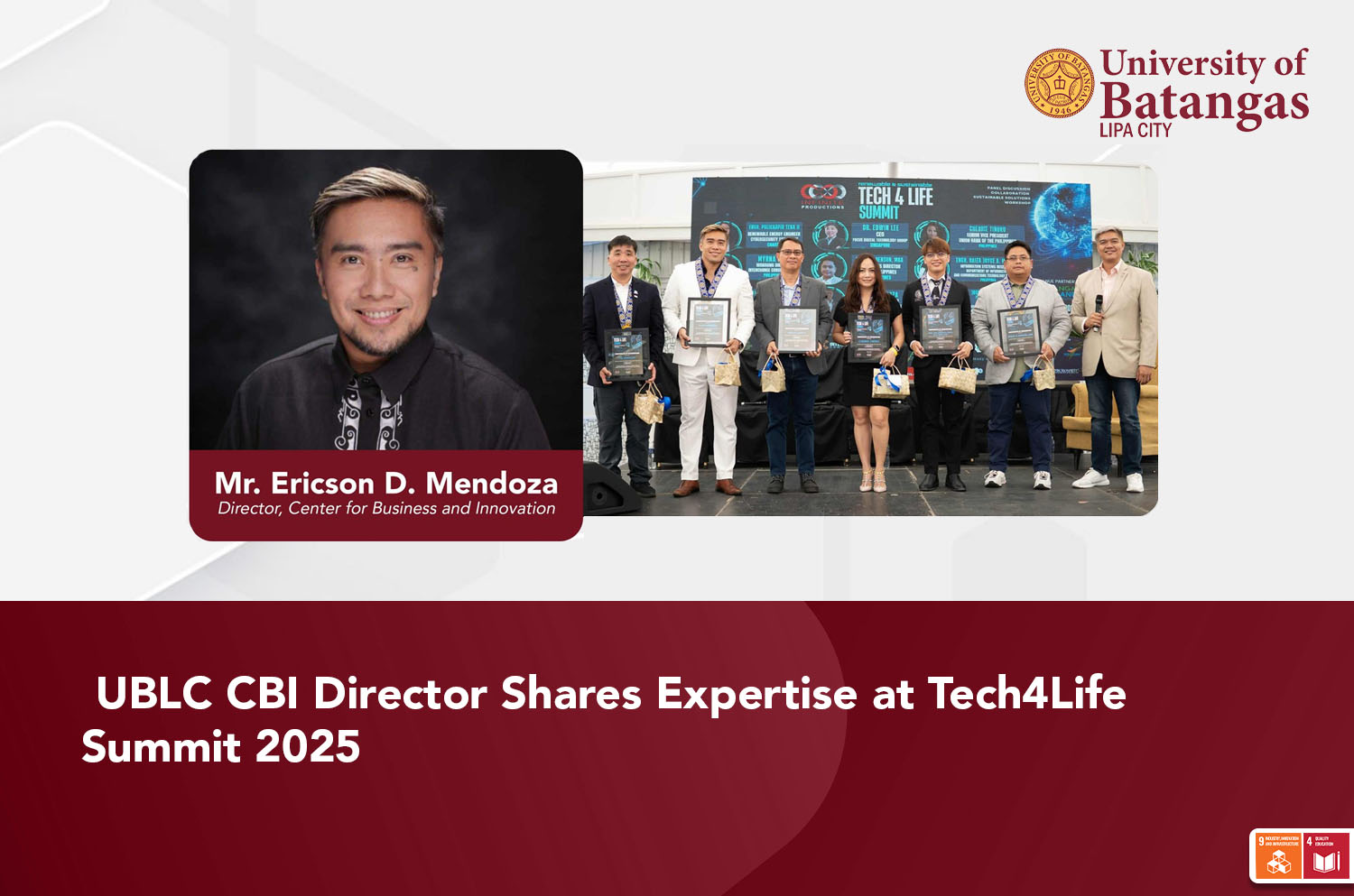 Mr. Ericson D. Mendoza, Director of the Center for Business and Innovation at the University of Batangas Lipa City, was one of the resource speakers at the Tech4Life Summit 2025 held on May 30, 2025, at Batangas Lakelands.