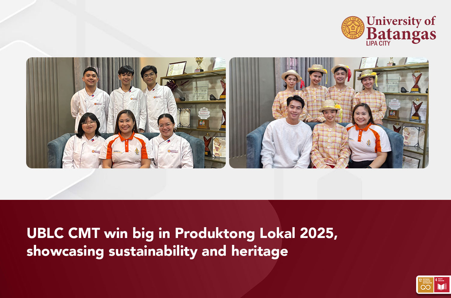 Lipa City, Batangas – September 13, 2025. The University of Batangas Lipa Campus (UBLC) proudly secured top spot at the Produktong Lokal 2025: Savor the Flavors of Heritage, Craft a Greener Tomorrow!, held on September 13, 2025, under the Junior Tourism and Hospitality Management Association of the Philippines (JTHMAP). The event underscored the importance of cultural preservation and sustainable innovation, bringing together the best student-led ventures from across the country.