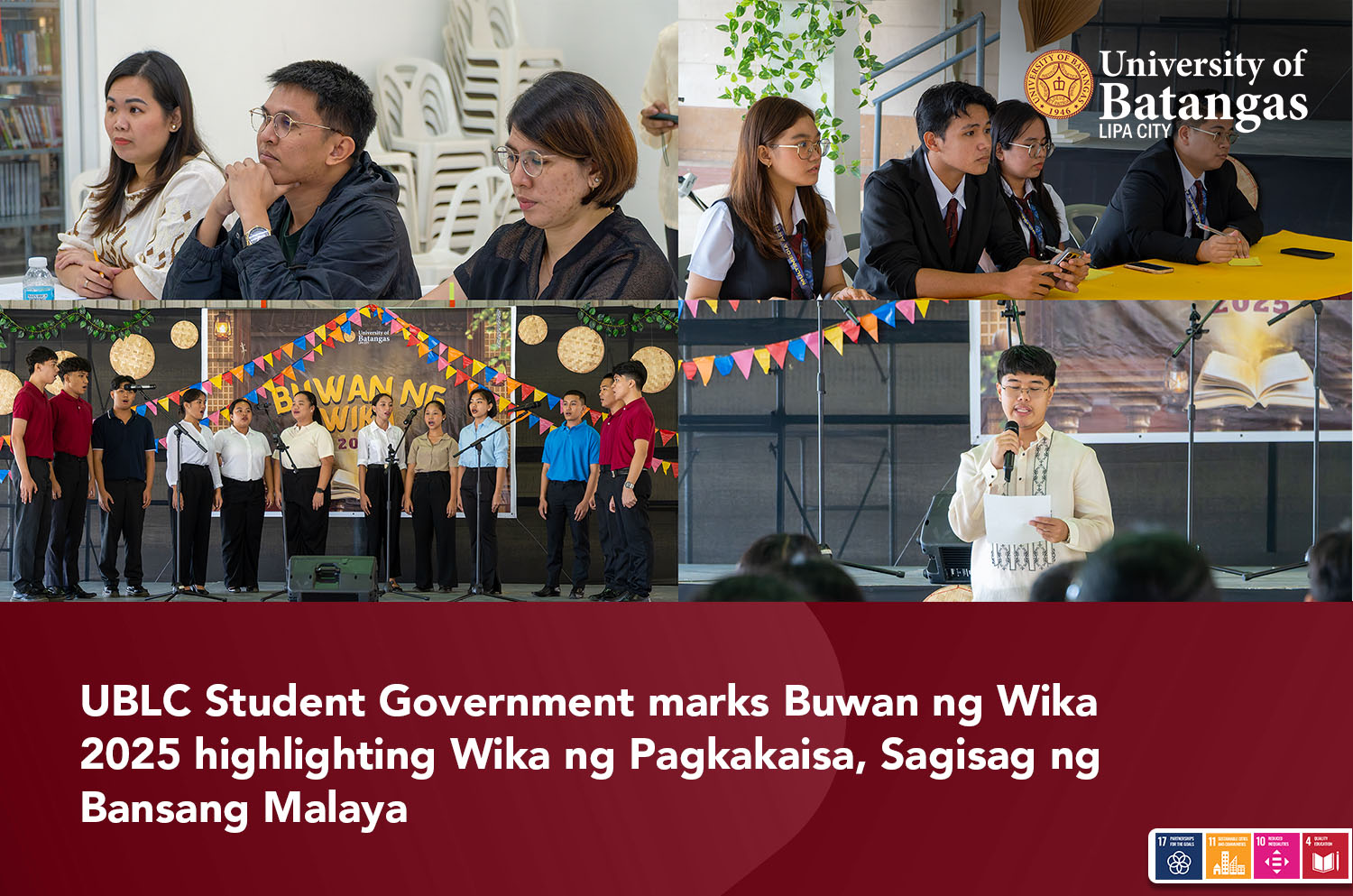 Lipa City, Batangas – August 28, 2025. The University of Batangas Lipa City (UBLC) Student Government celebrated Buwan ng Wika 2025 on August 28, 2025, at the UBLC Gymnasium and other campus venues, carrying the theme “Wika ng Pagkakaisa, Sagisag ng Bansang Malaya.” The event aimed to underscore the importance of the Filipino language in promoting unity, freedom, and national identity.