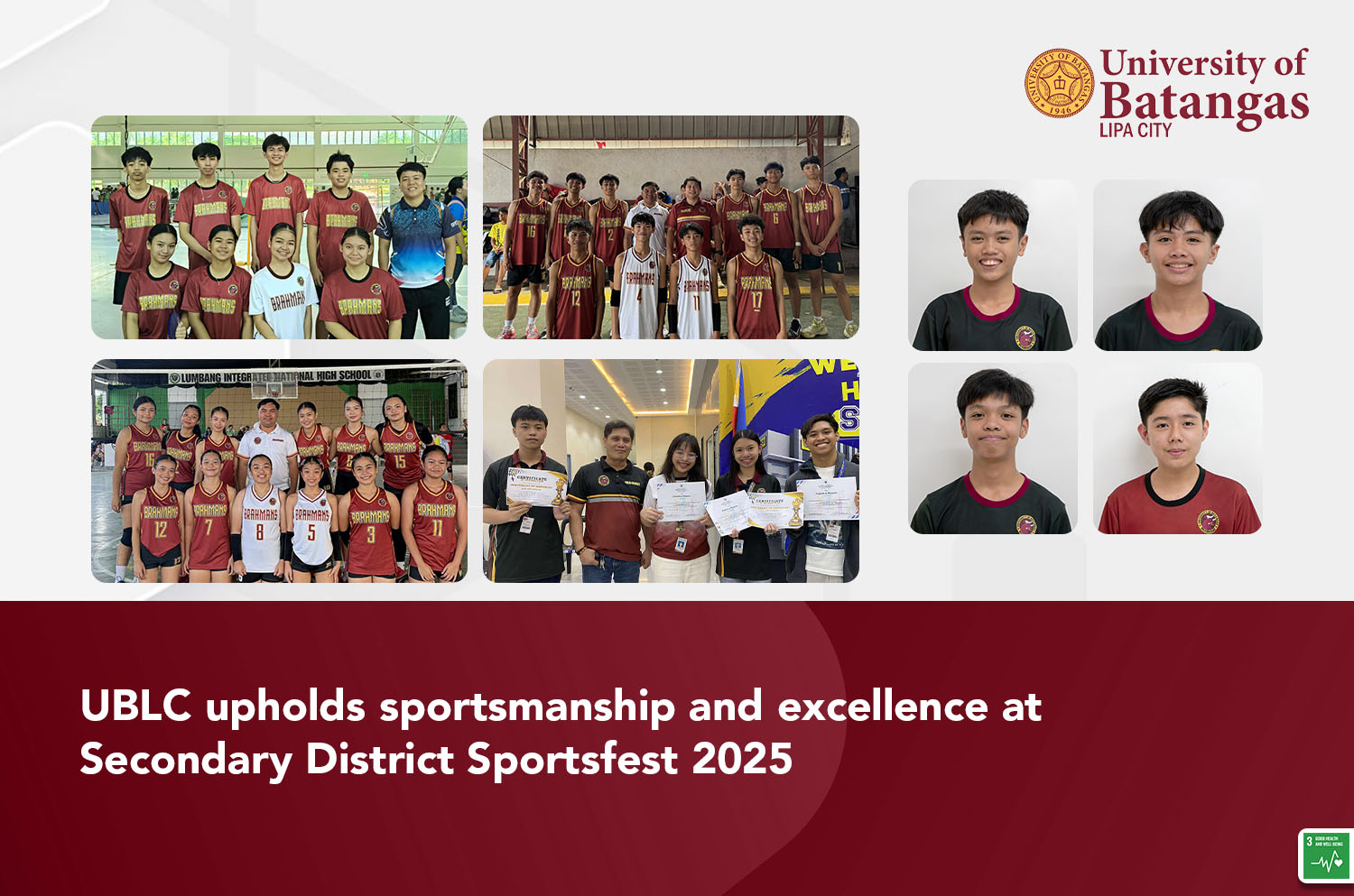 Lipa City, Batangas – October 8, 2025. Student-athletes from the University of Batangas Lipa City (UBLC) proudly showcased their athletic prowess in the recently concluded Secondary District Sportsfest 2025, held from October 1 to 2 and 6 to 8, 2025, across various venues including Lumbang Integrated National High School, De La Salle Lipa, Brgy. Lumbang Gym, and STI Academic Center Lipa. The event brought together student-athletes from different schools in a spirited display of sportsmanship, discipline, and excellence.