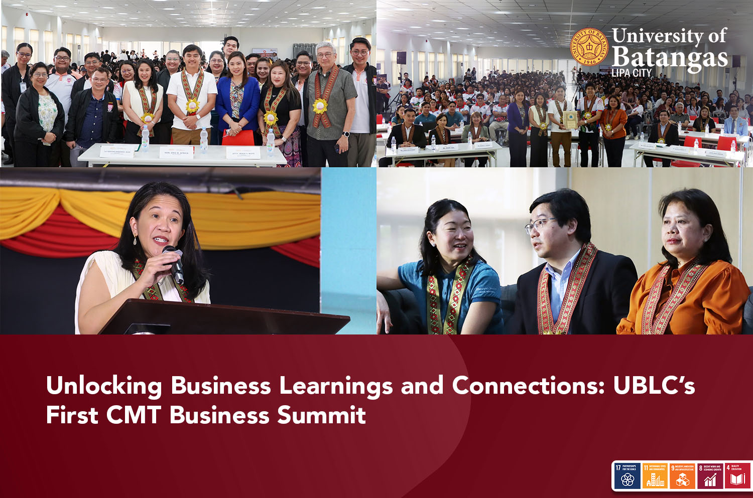 The University of Batangas Lipa City (UBLC) successfully hosted the 1st CMT Business Summit last May 25, 2025 at the UBLC Multipurpose Hall, Building C. Organized by the College of Management and Tourism (CMT), the event carried the theme “Unlocking Business Learnings and Connections,” drawing together established professionals, emerging entrepreneurs, and aspiring business leaders for a day of shared knowledge and collaboration.